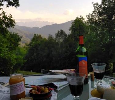 Food & DrinkTea/Coffee maker, Bottle of waterBathroomPrivate bathroom, Shower, Guest bathroom, Bathtub or shower, Toilet, Hairdryer, Toilet paperGeneralHeating, Trash cans, Hardwood or parquet floors, Fan, Soundproof, Fire extinguisher, Interconnecting room(s) available, Private entrance, IronKitchenHigh chair, Refrigerator, Coffee machine, Cleaning products, Dining table, Kitchenette, Stovetop, Electric kettle, Kitchenware, Wine glassesLiving AreaSofa, Fireplace, Sitting area, Dining area, DeskViewMountain view, ViewBedroomWardrobe or closet, Linens, Childrens' cribsOutdoorsTerrace, Outdoor dining area, Outdoor furnitureAccessibilityEntire unit located on ground floorRoom AmenitiesNon-feather pillow, Hypoallergenic pillow, Clothes rack, Drying rack for clothing, Socket near the bedEntertainment & Family ServicesBoard games/puzzles, Books, DVDs or music for children |