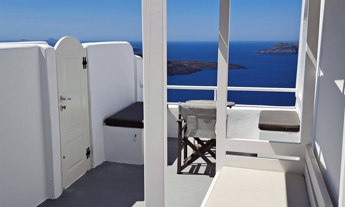 The place is suitable for couples and families (with a child). Located in the most magnificent spot of the island with an astonishing view like you have never seen before and just about a 7 minute walk to the center of Fira, Studio Yposkafo ideally combines tradition and comfort and offers a breathtaking view overlooking the famous volcano of Santorini and the Aegean Sea. The studio is an ideal sample of the architectural beauty of Cyclades. It also has a jacuzzi and a large balcony with view.