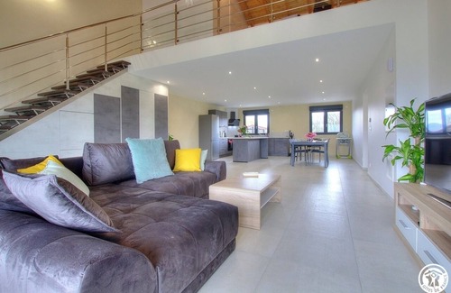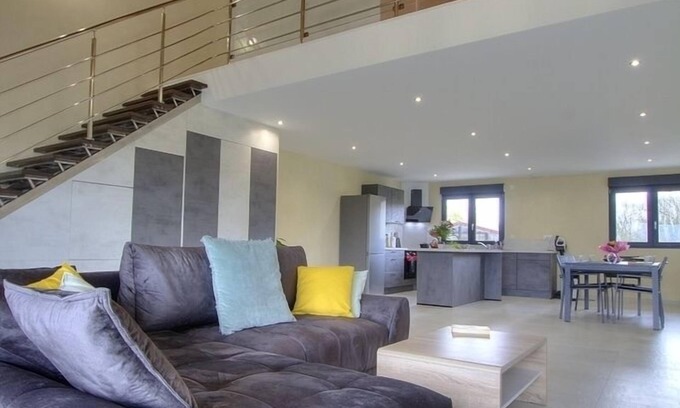 In a protected environment of 62 hectares dedicated to the welfare of horses, this cottage will be your ideal base for exploring the Pays de Gex and Switzerland. From the entrance to the family estate, everything is designed so that everyone finds their place. Among the spaces reserved for equines, you will have yours! Let the owners of the place guide you, and discover your future vacation rental. But start by stopping at the top of the stairs that lead to the terrace with the necessary equipment for your future outdoor meals. Do you see these fields and these mountains of the Haut-Jura? Ski resort 4 km away for lovers of skiing or beautiful walks in perspective for the less athletic. On site, possibility of horseback riding with an instructor (on request). Come on, it's time to introduce yourself! Bend over a little and you can say hello to the four-legged tenants below. You may be entitled to a little kick on the ground to welcome... Inside, wood and steel are present with its beams and railing. All harmonize around a soft and refined decoration. Large volume and space to meet between young and old. Travel light: beds are made on arrival, bathroom linen and utilities are included, even cleaning. This cottage, for 6 people, duplex. Located above a stable. Everything has been thought out for optimum comfort and quality service. On the first level: large living room of 46 m², two bedrooms: one bedroom with a double bed (160*200), a second bedroom with a double bed (160*200) and bathroom integrated into the bedroom. On the second level: a mezzanine with relaxation area, a third bedroom (2 90*200 beds) adorned with a low beam with raised beam passage (step on both sides), shower room with integrated WC. Mosquito nets. Aerothermal heating.