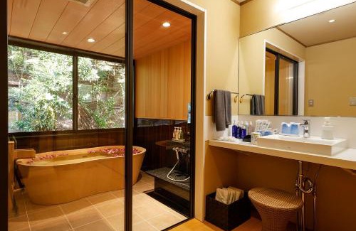 Food & DrinkBottle of water, Tea/Coffee makerBathroomToilet, Conditioner, Bathtub, Slippers, Shared toilet, Hairdryer, Toilet paper, Private bathroom, Bidet, Towels, Shampoo, Body soapGeneralSmoke Alarm, Safe, Heating, Air conditioning, Trash cansMedia & TechnologyDVD player, Flat-screen TV, TelephoneKitchenCoffee machine, Electric kettle, RefrigeratorLiving AreaDeskBedroomLinensRoom AmenitiesYukata, Tatami (traditional Japanese flooring)Safety featuresAir purifiers |