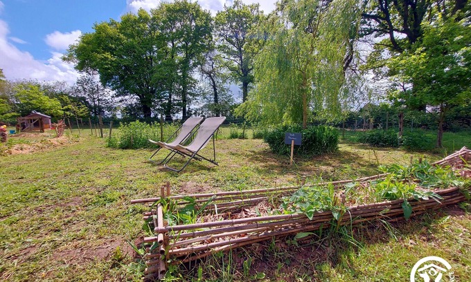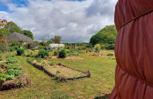 The yurt is located near the plant and vegetable garden, near the Ouessant sheep. It is good to relax in this vast, slightly overhanging space. Open the door, and let in the singing of birds, the sounds of animals around, the flight of insects... The interior, with its 27m², leaves room for 2 twin beds 90*200, armchairs, a coffee table, candles, soft lamps and a relaxation mat. Breathe.