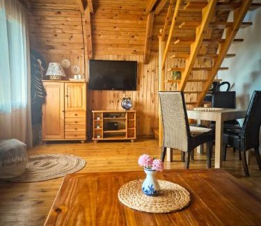 Featuring a garden, Z widokiem na jezioro - dom wakacyjny Kaszuby provides accommodations in Stężyca. The property is around 29 miles from Train Station, 29 miles from Gdansk Zaspa, and 31 miles from Olivia Hall. There's an outdoor fireplace and guests can use free Wifi and free private parking. Providing a terrace and lake views, the vacation home includes 2 bedrooms, a living room, flat-screen TV, an equipped kitchenette, and 1 bathroom with a shower. The property has an outdoor dining area. Gdańsk Lech Wałęsa Airport is 22 miles away.