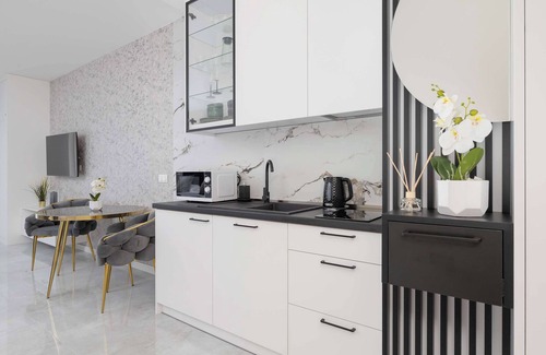A stylish studio designed with guests' comfort and convenience in mind. Its convenient location provides quick access to key city attractions, while easy and quick check-in and check-out allow you to make the most of your stay. The 26.77 m² studio apartment offers modern space, perfect for two people. A fully equipped kitchenette allows you to prepare meals in a homely atmosphere, while Smart TV and Wi-Fi ensure entertainment and connectivity throughout your stay. Underground parking is also available, ensuring safety and convenience. A VAT invoice can be issued upon request.