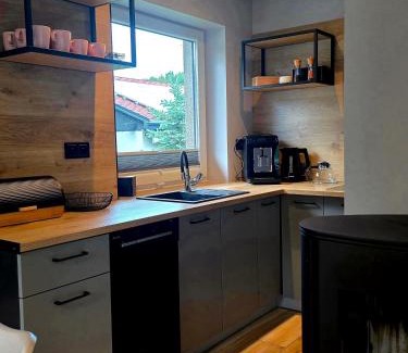 Featuring garden views, Zacisze Pod Śmielcem in Jagniątków provides accommodations and barbecue facilities. This property offers access to a balcony, free private parking, and free Wifi. The accommodation features a 24-hour front desk, full-day security, and currency exchange for guests. The vacation home provides guests with a terrace, mountain views, a seating area, a flat-screen TV, a fully equipped kitchen with a dishwasher and a microwave, and a private bathroom with shower and a hair dryer. A fridge, a stovetop, and kitchenware are also available, as well as a coffee machine and a kettle. At the vacation home, every unit is equipped with bed linen and towels. A selection of options including local specialities, fresh pastries, and fruit are available for breakfast. Guests at Zacisze Pod Śmielcem will be able to enjoy activities in and around Jagniątków, like skiing, cycling, and hiking. Outdoor play equipment is also available at the accommodation, while guests can also relax in the garden. Dinopark is 8.8 miles from Zacisze Pod Śmielcem, while Szklarska Poreba Bus Station is 9.4 miles from the property. Copernicus Wrocław Airport is 72 miles away.