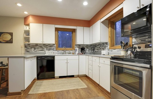 It’s lovely here! Or perhaps you are more of a, this place is awesome person? No matter how you put it, Zeeplace is a lovely, recently upgraded home in Timberline Mountain’s Northface community. It’s a very short walk to Salamander, the very popular 2-mile ski trail. Don’t mess with loading the gear and the kids. Zeeplace makes family ski trips so much easier! Nestled on the rocks high on the hill, Zeeplace sits beside a mountain stream. Year-round enjoy the tranquil songs the babbling brook provides. Relax on the deck, beverage in hand, and soak in all the nature you can! Enjoy evenings by the fire and friendly meals prepared in the well-equipped kitchen. In every season hikers will love the proximity to hiking trails and the infamous Dolly Sods. It is a short drive to Blackwater Falls, Davis, Thomas, and all things Tucker County! Winter visits will require 4-wheel drive vehicles and possibly chains too. No exceptions!