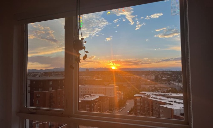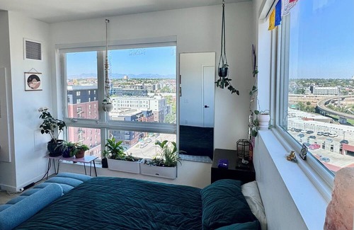 Discover tranquility in the heart of downtown Denver at Zen Mountain View Loft, a serene corner unit on the top floor with epic north and west-facing views of the Rockies. This zen inspired retreat offers a peaceful escape while being just steps away from the city's vibrant energy. With modern amenities and a cozy ambiance, it’s perfect for travelers seeking both relaxation and convenience. Enjoy your morning coffee with panoramic views, and unwind in the evening as the sun sets over the city.