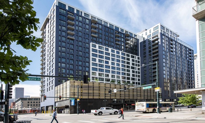 Enjoy views of Denver's iconic Union Station and mountains from your couch. Whole Foods is across the street, train station to mountains and airport next door, dozens of restaurants, bars, gyms nearby