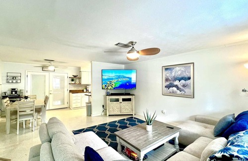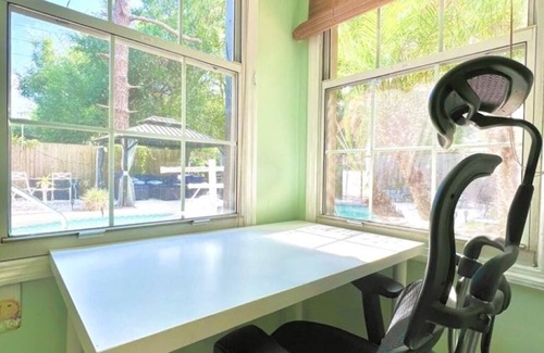 Lounge by the private pool, gather at the fire pit, or unwind under the gazebo. Rinse off in the outdoor shower and relax in the Florida room. Inside, enjoy foosball, board games, a 70" smart TV, and 50" TVs in each bedroom. Cook in the fully stocked kitchen and rest easy in three serene bedrooms.