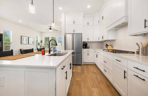 Welcome to Zen Spot! Enter our home to find the modern and open living room complete with a Smart TV, a cozy couch, and dining area. The kitchen is fully stocked and features new appliances and a large kitchen island. If you need to get any work done there is an office space with a desk and chair. Upstairs, you'll find a second hang out spot with a couch and a projector!