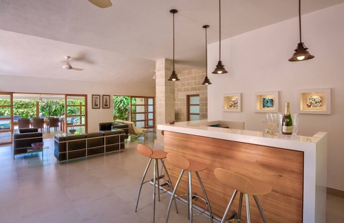 This 4 bedroom, 4.5 bathroom villa has open plan living areas and stunning sea views. The main house features 2 en suite, air-conditioned bedrooms on the upper level, while a further 2 guest suites, along with a family/media room, are located just off the courtyard terrace (cottage). The outdoor living space comprises of large terraces, entertainment patio, dining gazebo, lush tropical gardens and private pathway leading down to the beach