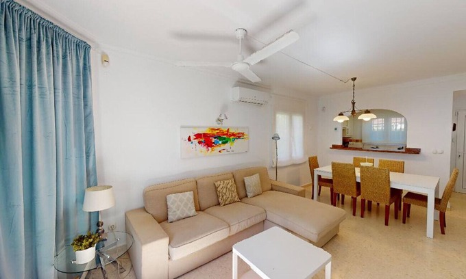 Two-bedroom bungalow distributed over two floors, located in the prestigious Malibu Beach II residential area. The open and fully equipped kitchen is perfect for preparing delicious meals. Additionally, the bungalow has a charming private garden area, ideal for enjoying nature. Guests can enjoy a communal swimming pool as well as a communal garden. Clients have reserved parking spaces at the entrance of the residential area for added convenience