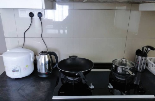 While you're here, you can enjoy all the comforts of home and more, including a refrigerator and a stovetop, as well as free WiFi and a TV. Other amenities include designer toiletries, towels, kitchenware and utensils, and a desk.