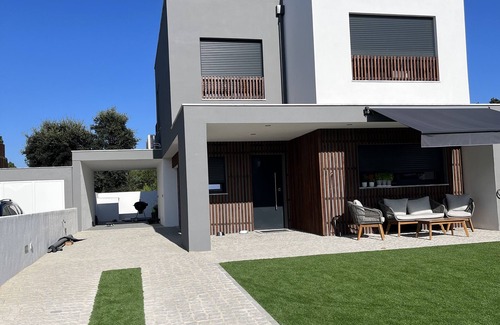 A modern vila of recent construction at the entrance of Sesimbra that allows you to enjoy the paradisiacal beaches and landscapes of peaceful Arrábida, and beaches such as Meco or Albufeira Lagoon. Only 30km from Lisbon, and a few minutes from the center of Sesimbra. It is located in a quiet street of new construction next to the main shopping centers in the area. Designer furniture and high-end kitchenware in a fully equipped kitchen. Everything you need for a perfect rest and stay and enjoy the beauty of the coast, the beautiful Sesimbra and the gastronomy of Portugal.