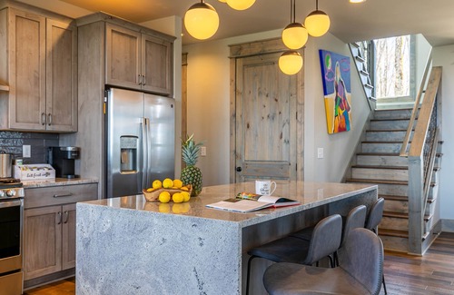 Inside, this 4 bedroom home comfortably sleeps 10 (nobody has to sleep on a sofa!). Three bedrooms each with a king sized bed and one bedroom with two sets of bunk beds. There are three full baths and one half bath. The oversized gas fireplace allows for quick, easy indoor fires. The spacious, modern kitchen with amazing views make cooking a true pleasure. Bar seating for 4, dining table for 10, and outdoor dining table give you plenty of options of where to eat. There is a second TV area with a foosball table for fun and games. Primary suite on the main floor features a TV, breathtaking views, and a huge roll in shower. Zion includes a whole-house generator - so never worry about losing power!
