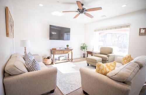 17 miles from St. George Temple in Hurricane, Zion Village Oasis by the Pool with Lazy River offers accommodations with access to a spa center and fitness center. This vacation home features air-conditioned accommodations with a balcony. The accommodation provides a hot tub, free Wifi throughout the property, and a 24-hour front desk. The vacation home features 3 bedrooms, a fully equipped kitchen with a dishwasher and an oven, a washing machine, and 3 bathrooms with a hair dryer. Towels and bed linen are provided in the vacation home. For added privacy, the accommodation features a private entrance. Guests at Zion Village Oasis by the Pool with Lazy River will be able to enjoy activities in and around Hurricane, like canoeing and hiking. Golfing, horse riding, and fishing are possible within the area, and the accommodation offers water sports facilities. Pine Valley Chapel is 13 miles from Zion Village Oasis by the Pool with Lazy River, while Dixie State University is 16 miles away. St. George Municipal Airport is 17 miles from the property.