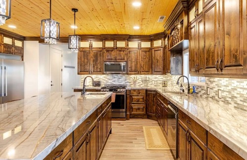 The huge open-concept kitchen and dining area plus 3 additional kitchenettes are perfect for sharing meals, while 7 private bedrooms ensure everyone has their own space to recharge.