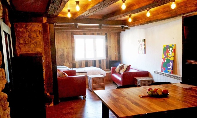 This newly remodeled apartment is located in a historic house in the center of Sulzbach. The apartment has 65 m2 of living space consisting of a fully equipped modern kitchen. One bathroom. One bedroom with a double bed and a large closet. An open living and dining room plan with an extra sleeping sofa bed. This apartment has a private entrance. It has an original rustic vintage style with wooden floors, stone walls, cement floor tiles. It can accommodate three adults or two adults and one child. It also has free WIFI and a Smart TV with Netflix installed.