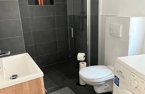 This 1-bedroom, 1-bathroom rental features a living room, a safe, and a desk. Connect to the WiFi, or get cozy in front of the Smart TV. Bathroom amenities include a hair dryer, towels, and toilet paper. Prepare a home-cooked meal in the kitchen, complete with an oven, a stovetop, and a refrigerator, as well as a coffee maker, an electric kettle, and a microwave. And you can even travel light because you'll have access to laundry facilities. Other amenities include bed sheets, an ironing board, heating, and a desk chair.